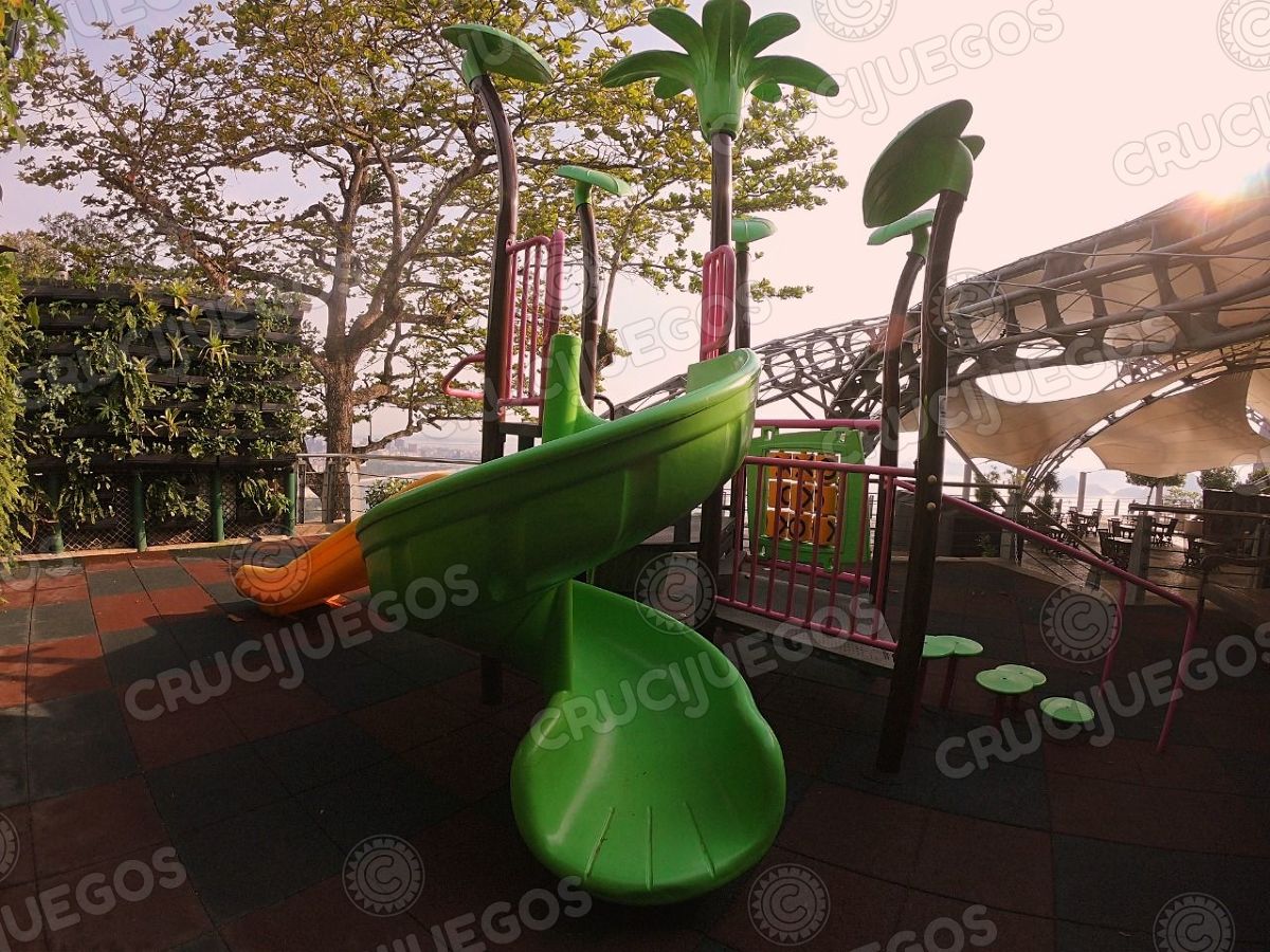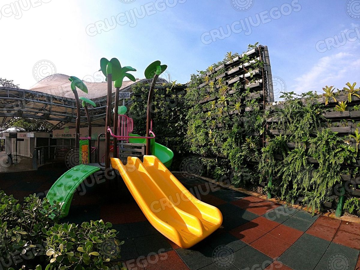 En este proyecto intervenimos el patio de juegos ubicado junto al restaurant, donde incorporamos un juego tematico diseñado para niños de 4 a 12 años sobre una superficie antigolpe y un Totem solar para recargar los celulares.