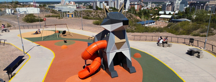 En el Balcón del Valle, en el corazón del Parque Norte de Neuquén, un zorro patagónico de casi cinco metros se convierte en protagonista del juego. Este mangrullo temático fue diseñado a medida para integrar identidad local, juego simbólico y participación ciudadana en un entorno natural único.