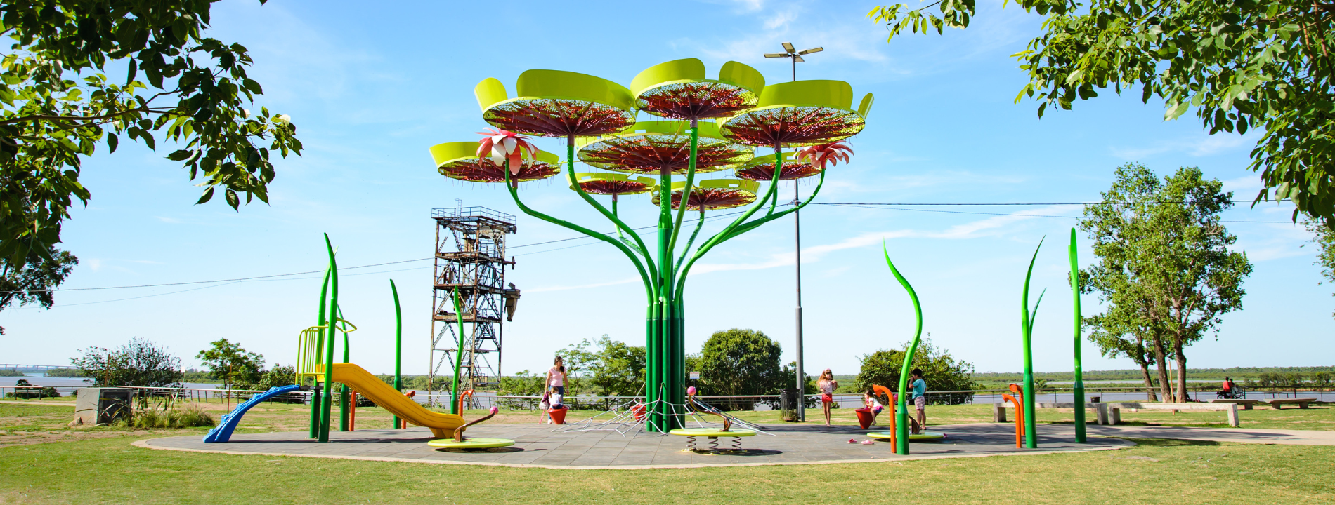 Un parque escultórico que florece desde el paisaje ribereño de Rosario. El Irupé combina arte, naturaleza y juego en una propuesta única donde las grandes hojas metálicas se transforman en refugio, inspiración y aventura. Un espacio lúdico que conecta a las infancias con el entorno, invita a descubrir las especies del río Paraná y promueve el cuidado del ambiente a través de la experiencia.