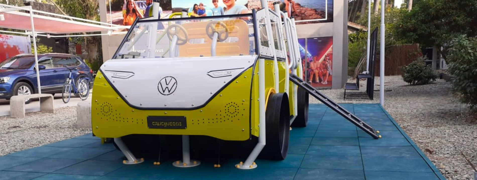 En Cariló, la icónica esencia Volkswagen se convierte en juego. Esta furgoneta lúdica, inspirada en el nuevo modelo Buzz, invita a chicos y adultos a explorar su diseño, interactuar con sus formas y vivir una experiencia que combina marca, familia y diversión al aire libre.