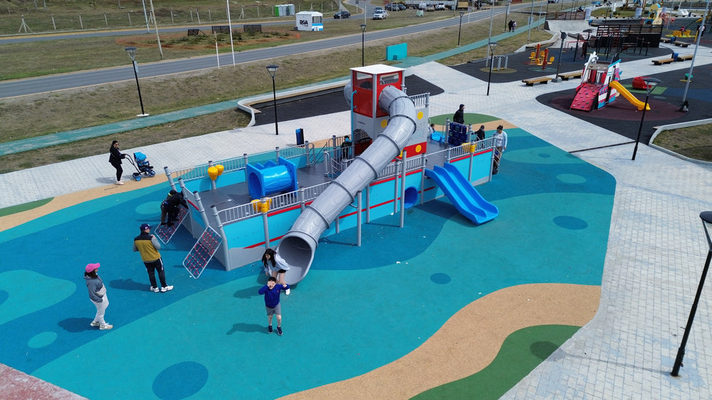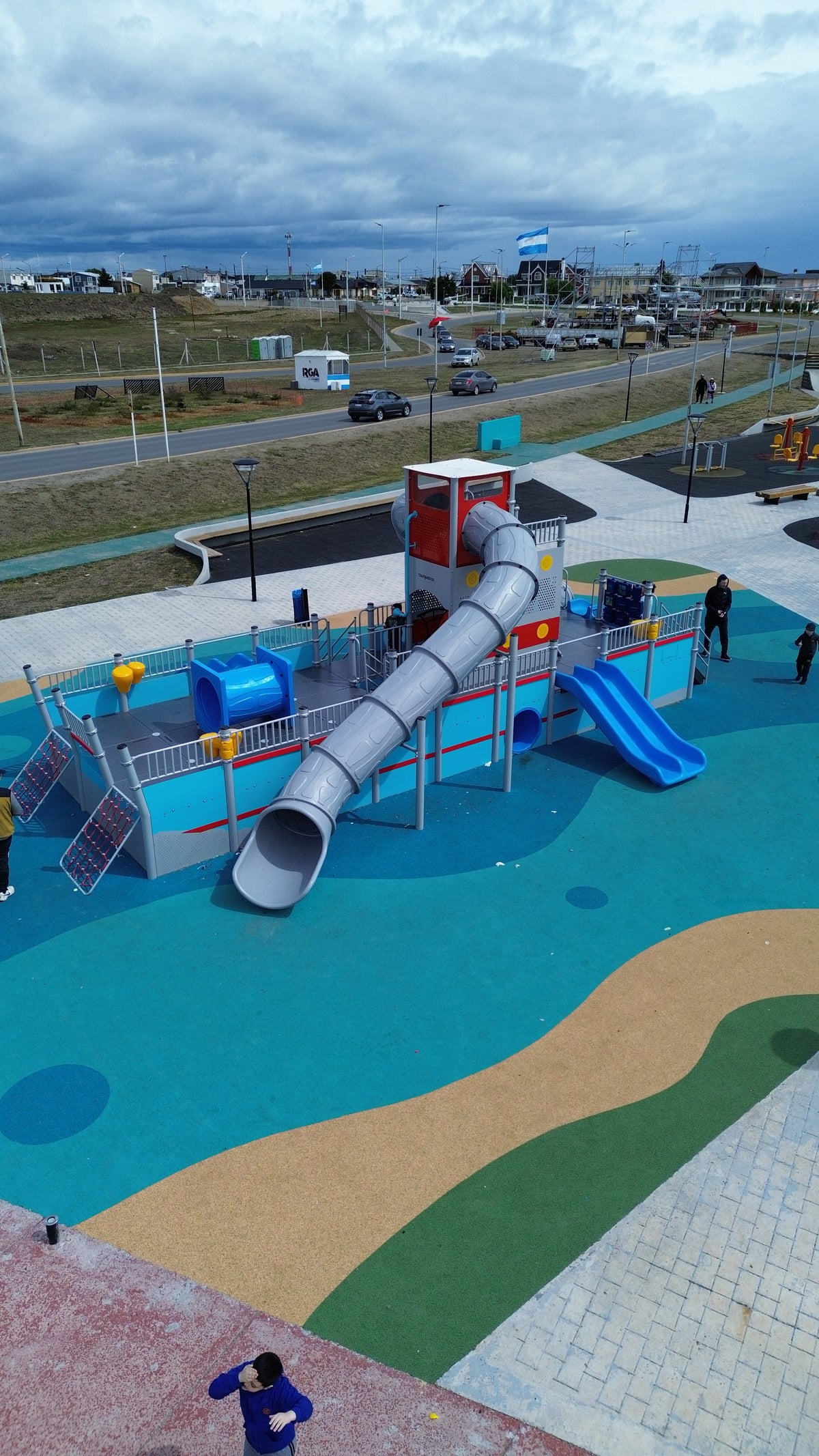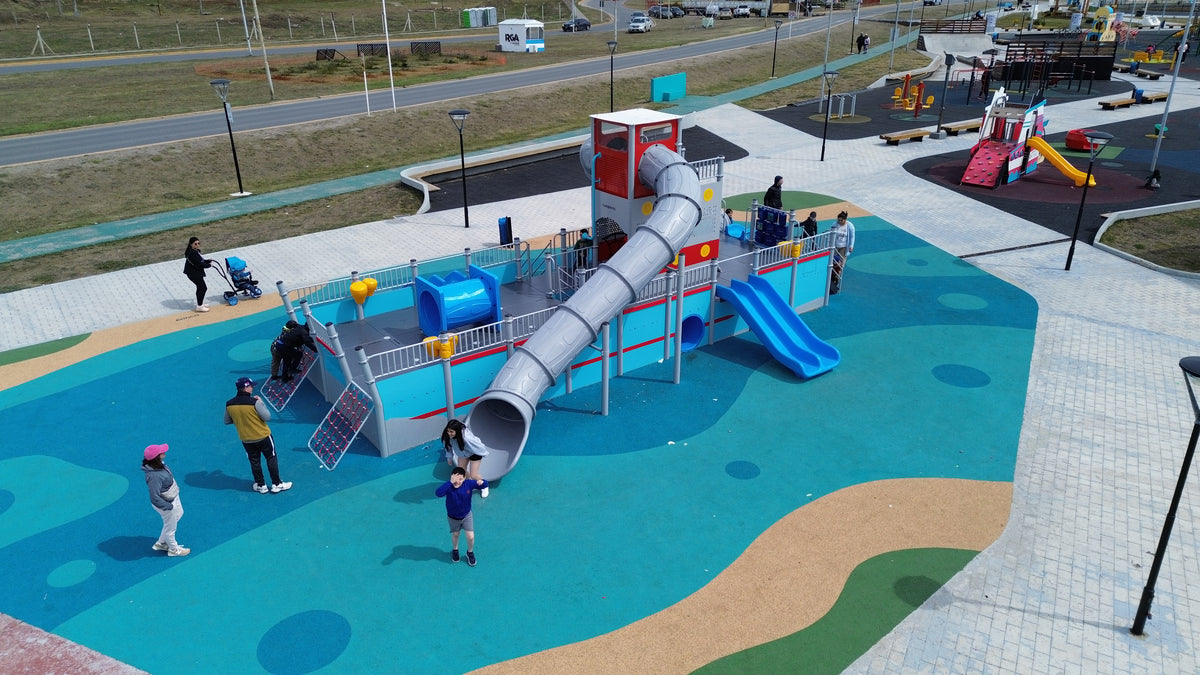 La intervención en el Parque de los 100 Años incorpora el Barquito Azul, un juego temático diseñado para enriquecer la experiencia lúdica y acompañar el crecimiento de este parque como punto de encuentro para vecinos y vecinas de la ciudad de Río Grande.