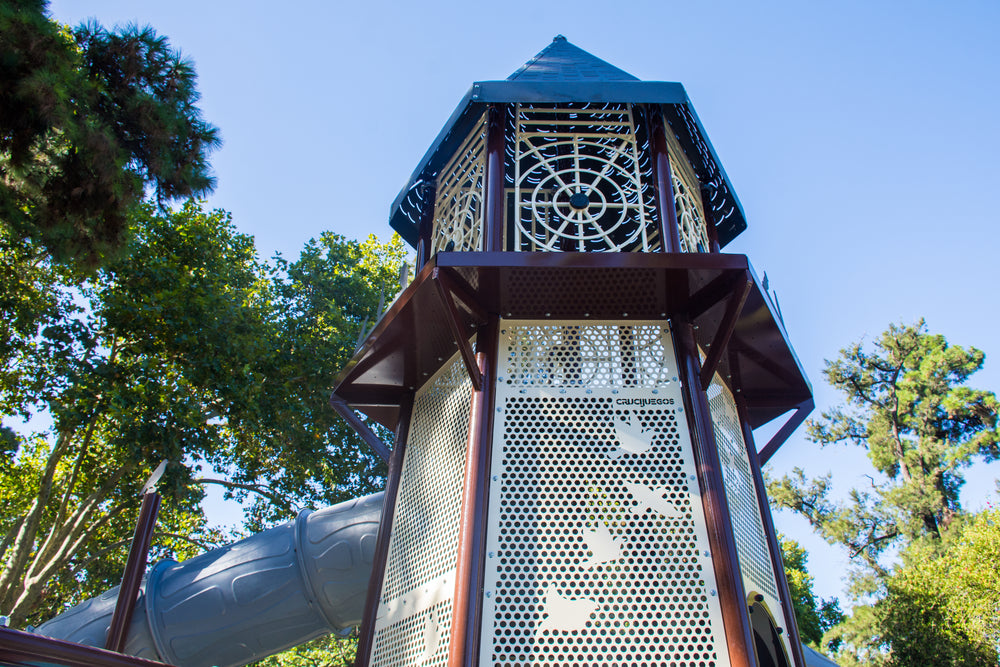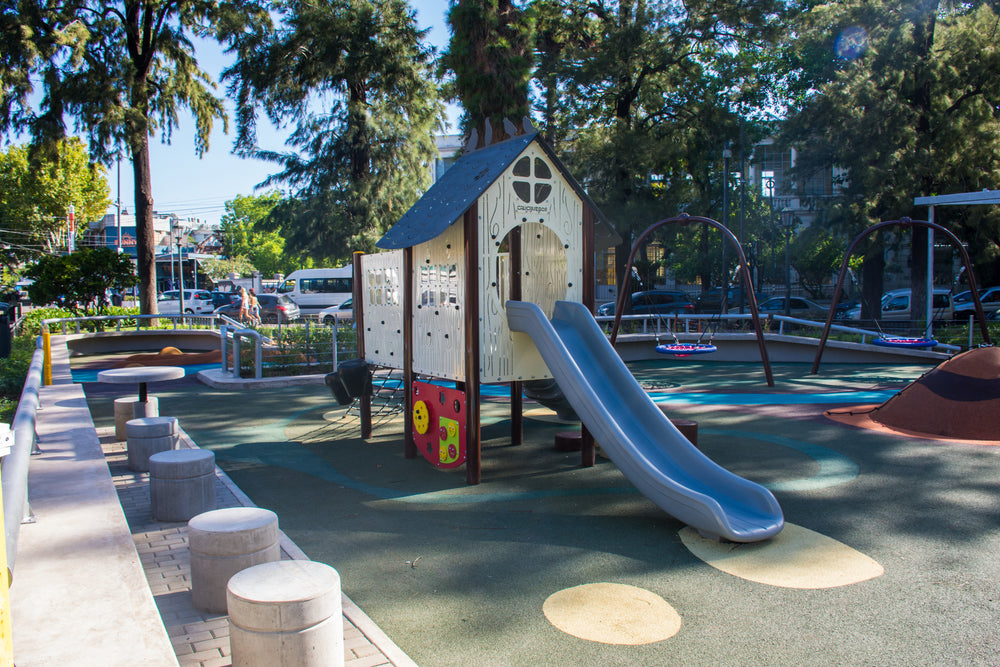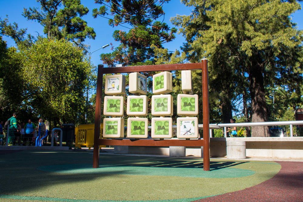 Todos los juegos han sido cuidadosamente diseñados con esta esencia, y se han instalado en un piso antigolpes que recrea un mini paisaje con diferentes topografías y elementos naturales. Además, se han añadido nuevos bancos, mesas, pictogramas, cartelería y elementos de paisajismo circundante para crear áreas agradables de descanso tanto para los padres como para los niños.