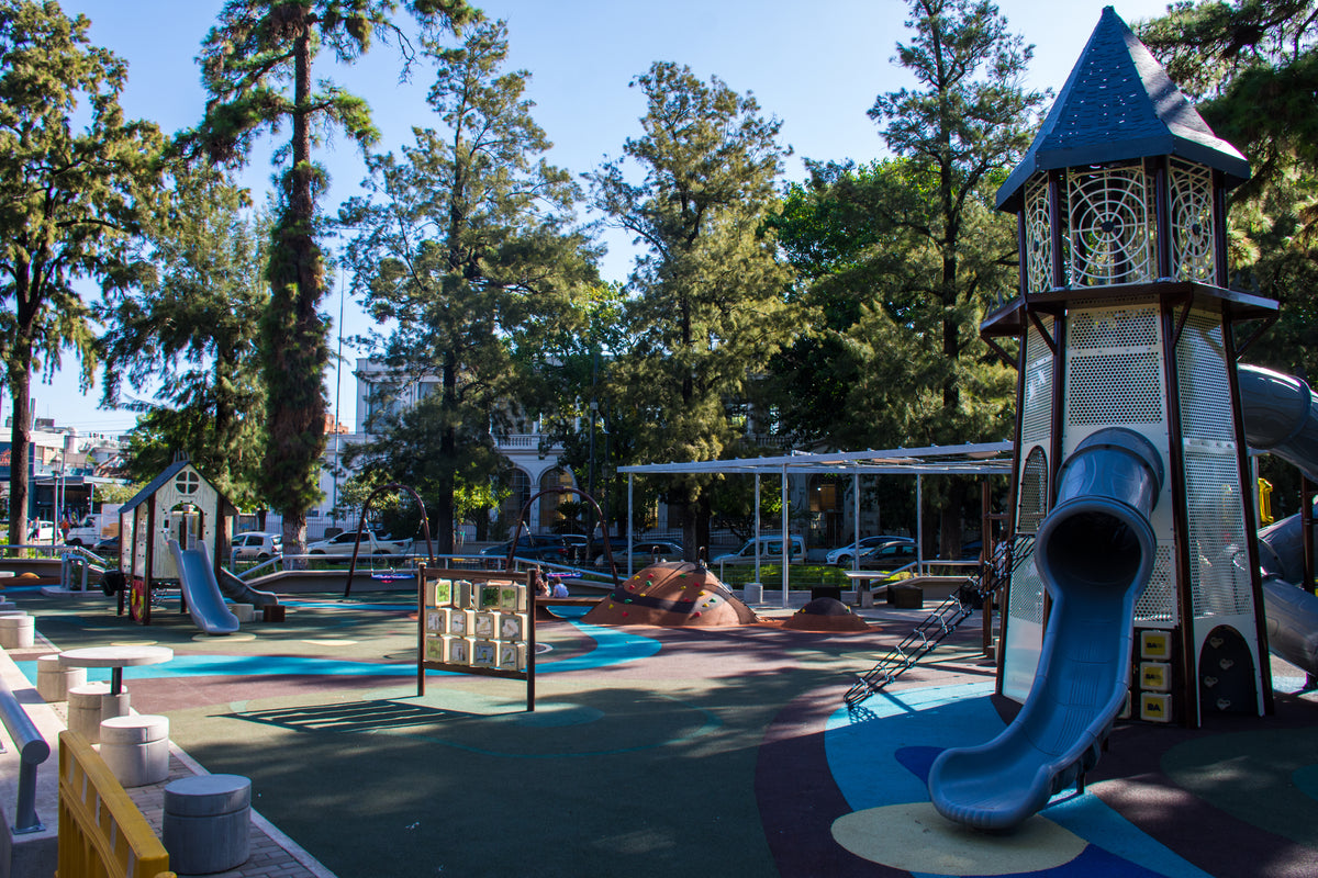 El diseño del espacio lúdico está inspirado en el encantador Jardín de Buenos Aires, como es conocido el barrio de Devoto.